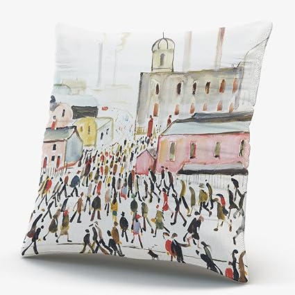L S Lowry Designed Cushion Cover Going To Work Artwork 43x43